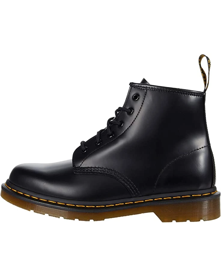 - The Dr. Martens® 101 Yellow Stitch boots embodies all the classic clean lines, standout stitching, and edgy attitude of the vintage utilitarian work boot, but in a lower-cut design and a smooth leather construction.