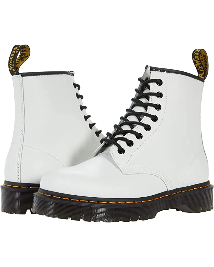 - Features classic Doc’s DNA including grooved edges, yellow welt stitching, and a scripted heel loop.