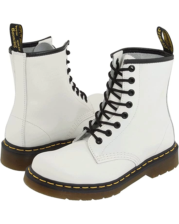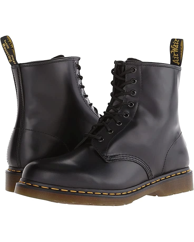 - Trademark Dr. Martens® yellow stitching and “Air Wair” heel pull loop.