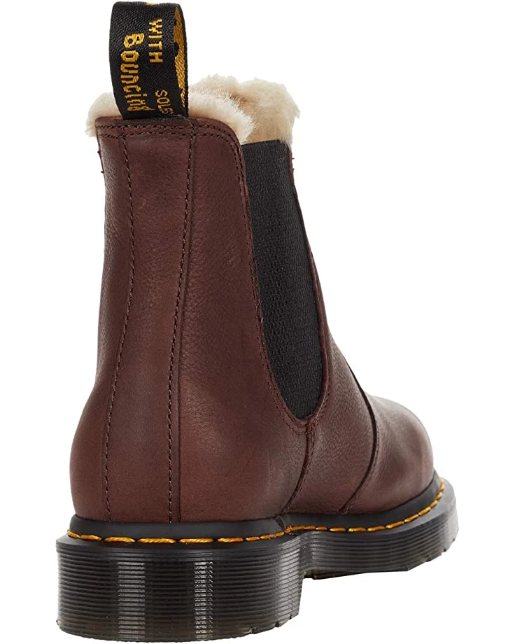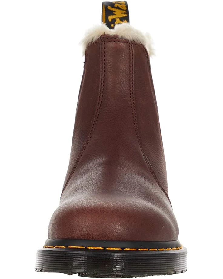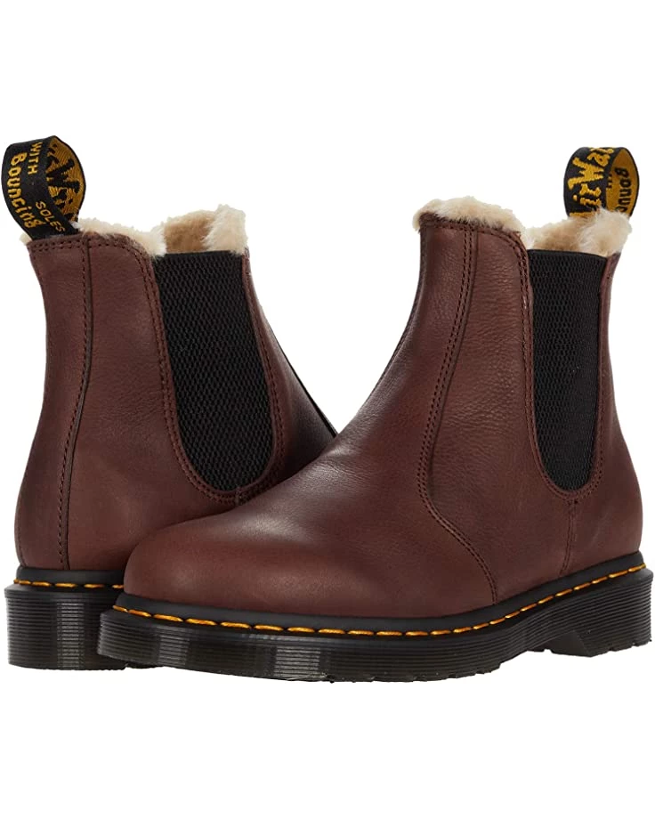 - Dr. Martens® 2976 FL pull-on booties are constructed from genuine leather will pull-on tabs for easy entrance and exit lined in faux-fur. Available in two color options.