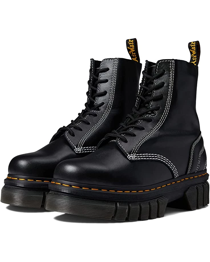 - The Dr. Martens Audrick 8-Eye Quilted Boot adds boho-inspired style to any look. Its versatile silhouette pairs perfectly with jeans and printed dresses.