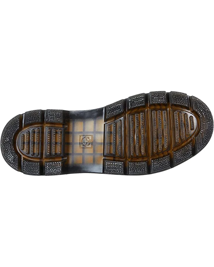 - Features classic Doc’s DNA, including grooved heels, scripted heel loop, and visible yellow stitching.