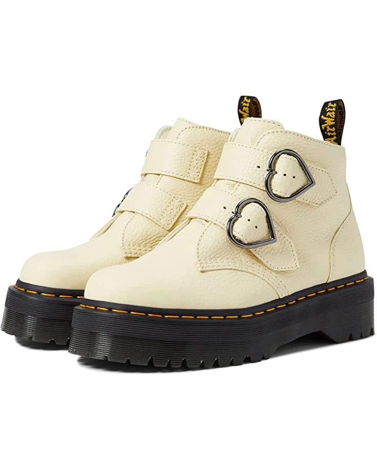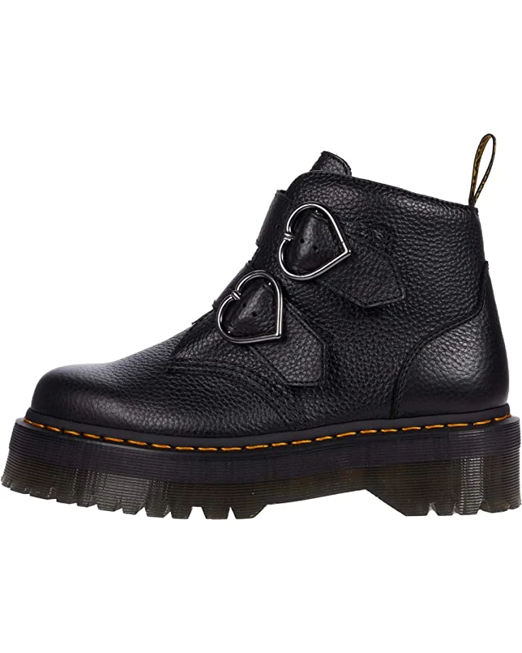 - Fascinate anyone who glances your way when you step out in the Dr. Martens® Devon Heart boot! This attractive leather boot offers a striking, rugged look with a stacked heel to boost your style to all new levels.