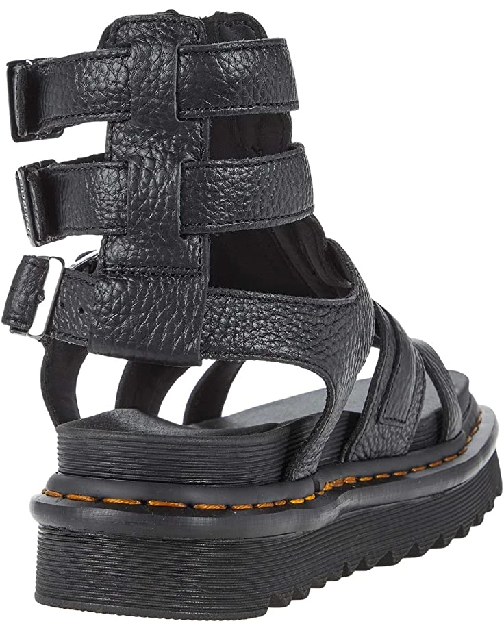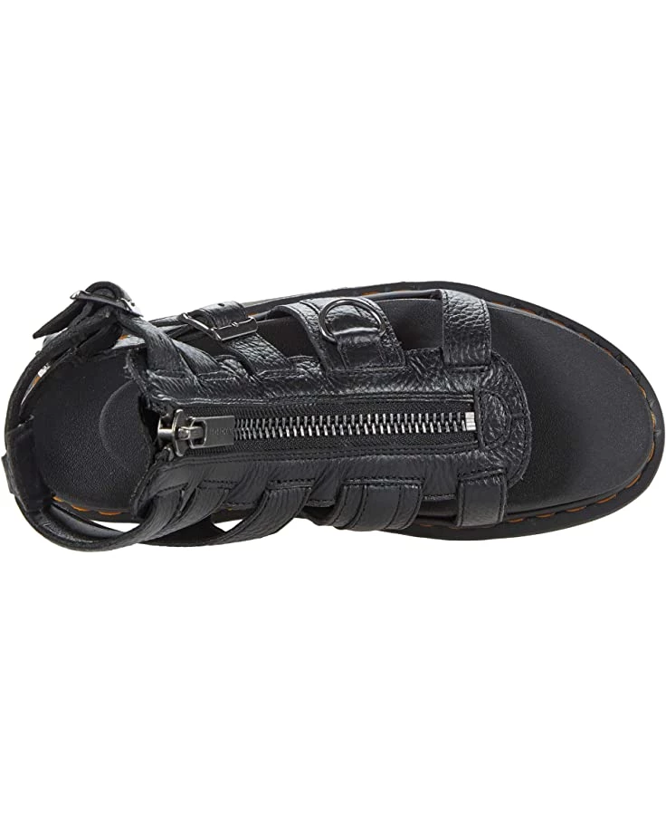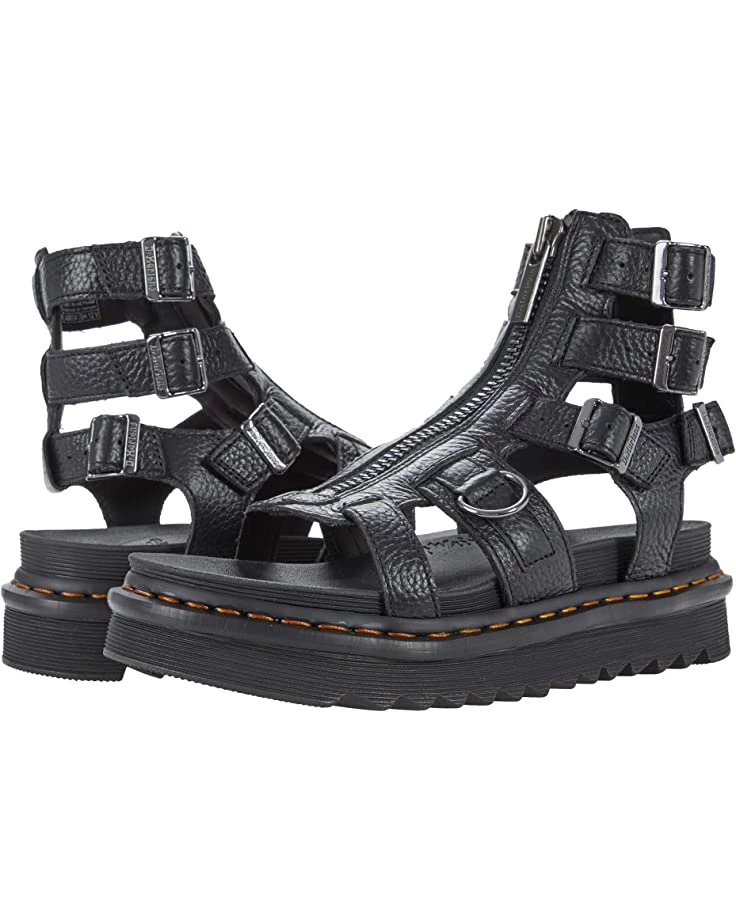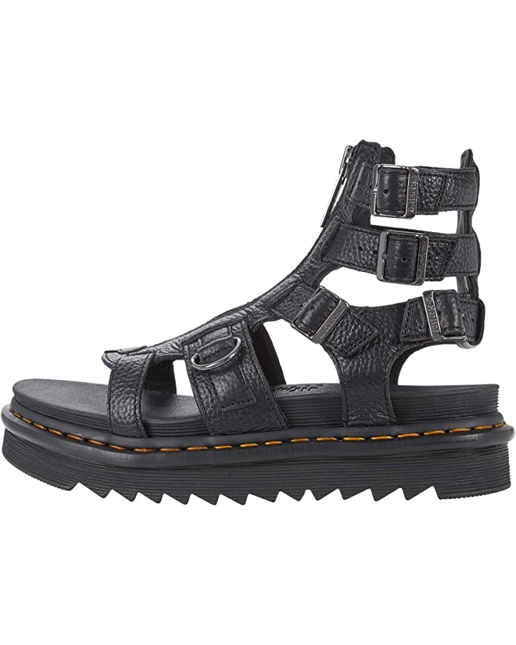 - Fasten in to the soft Nappa Leather of Dr. Martens® Olson zippered strap sandals. Supremely durable and supportive up to the ankle, they give you the best of both worlds, toes out and ready for good weather.