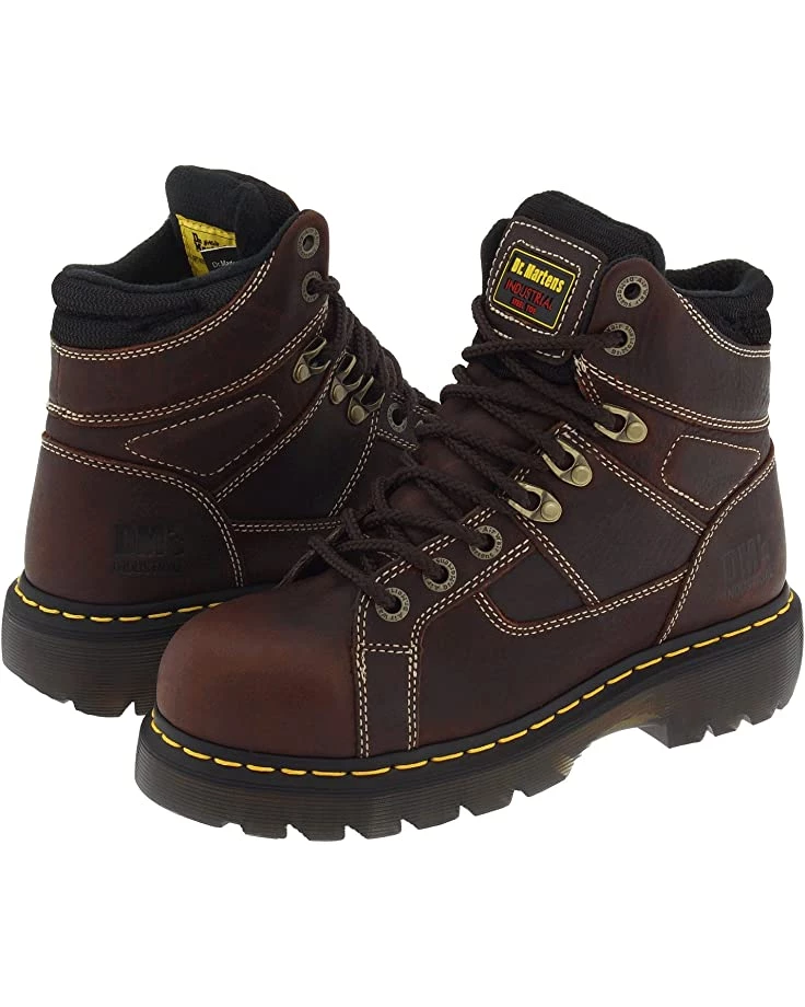 I purchased these Doc Ironbridge steel toe Industrial boots at a local work boot store and wish I’d bought them at Zappos instead because they are cheaper at Zappos (plus free shipping and no tax!). I drive a tractor-trailer for a regional produce company and deliver daily to a dozen restaurants. This type of work is very hard on boots, working in the docks, trailers, city alleys and greasy restaurants. These boots have held up very well to that tough environment, are exceptionally comfortable and get great traction on greasy restaurant floors. Granted, you do have to break them in for a week or so and experiment a little with lacing to get the perfect fit, but after that, they fit great and I haven’t had any discomfort with the steel toe either. I clean them off every night and occasionally use Doc Marten’s Wonder Balsam and they still look new after months of use. Oh and the style, with yellow stitching – I deliver in a college town and the women compliment me on the style and instantly recognize they are Docs! I highly recommend them.