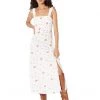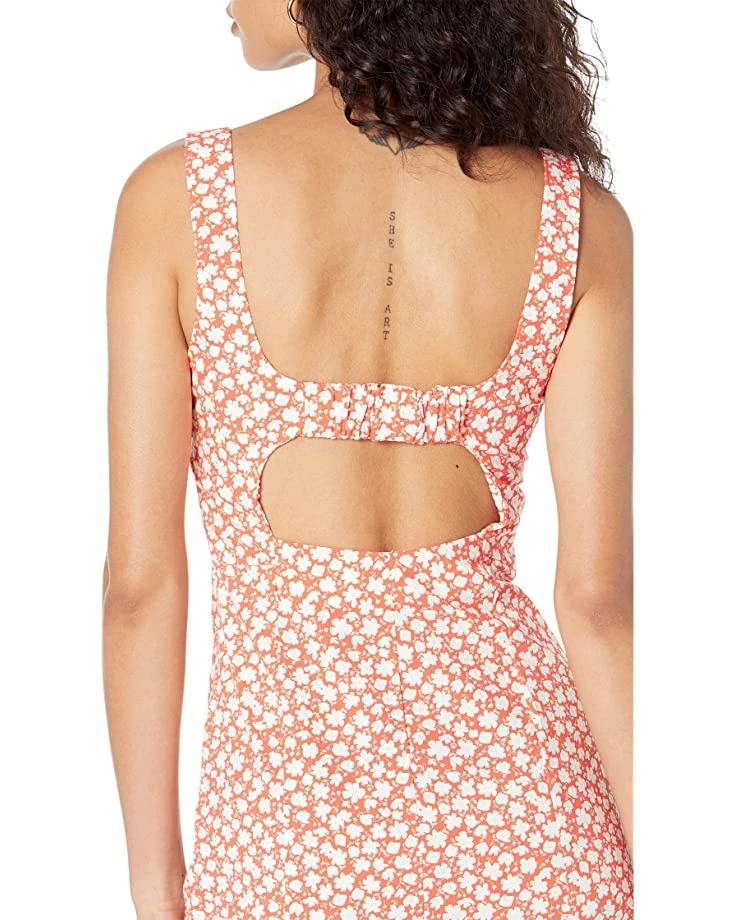 - Sleeveless dress with a square neckline.