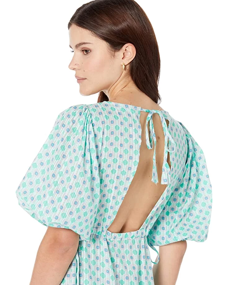 - Tie closure on the back with cutout detailing.