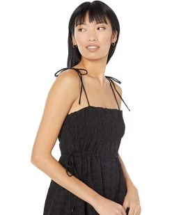 - Square neckline and thin drawstring fastening spaghetti straps.