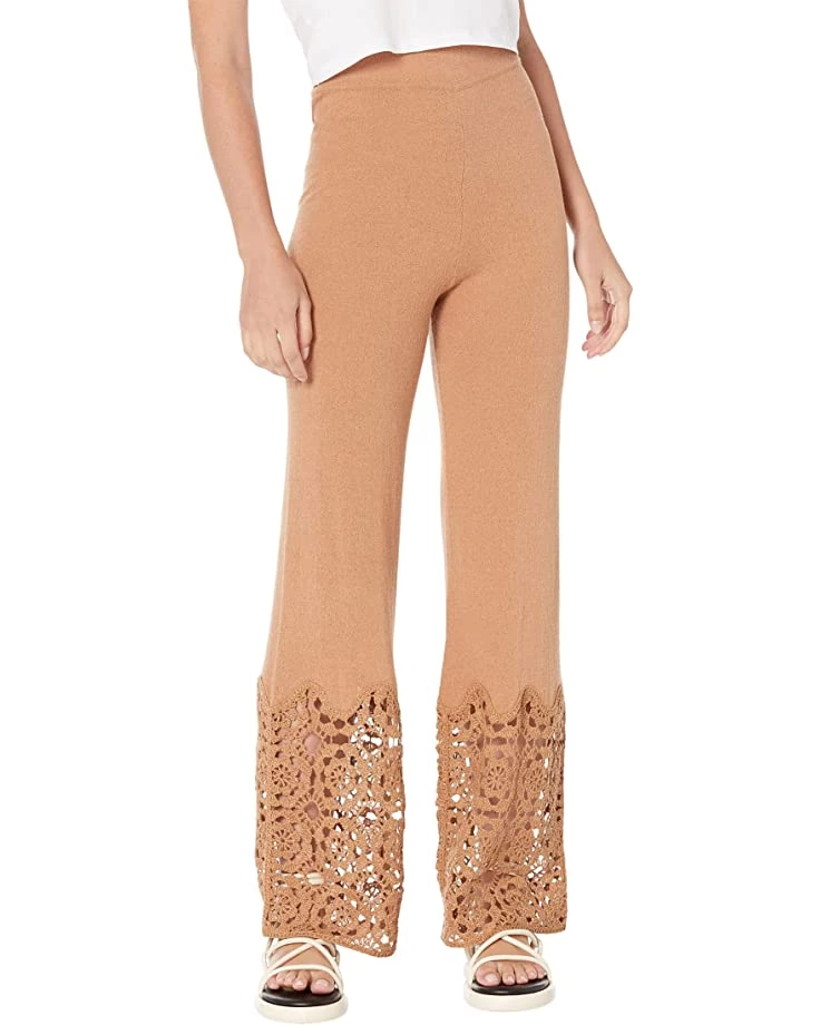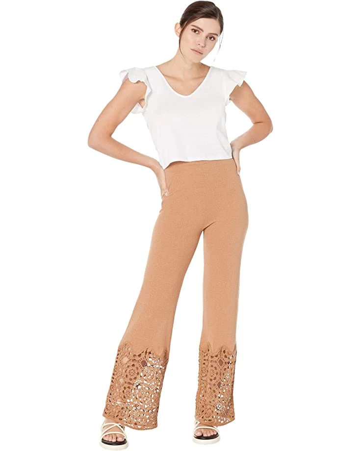 - Crochet-style lace at bottom of pant legs.