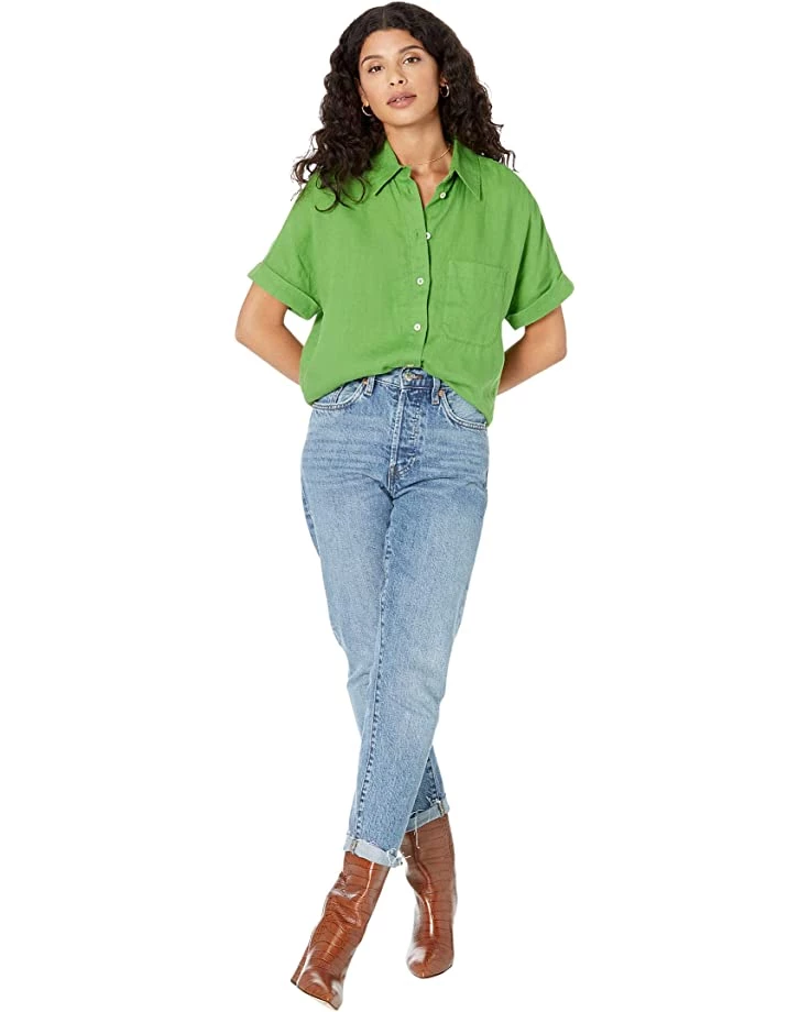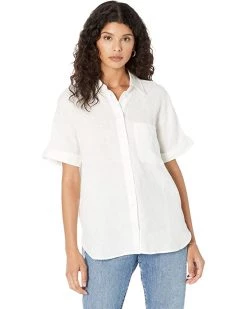 - Relaxed fit short featuring a collared neckline and short sleeves with rolled tab on the cuffs.